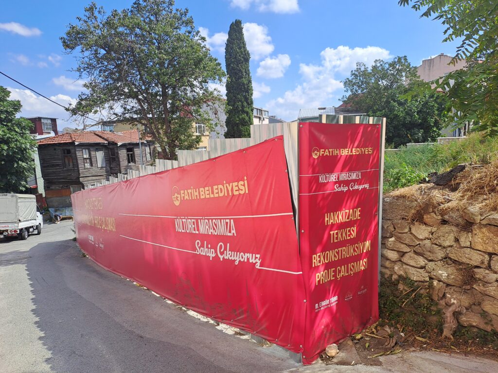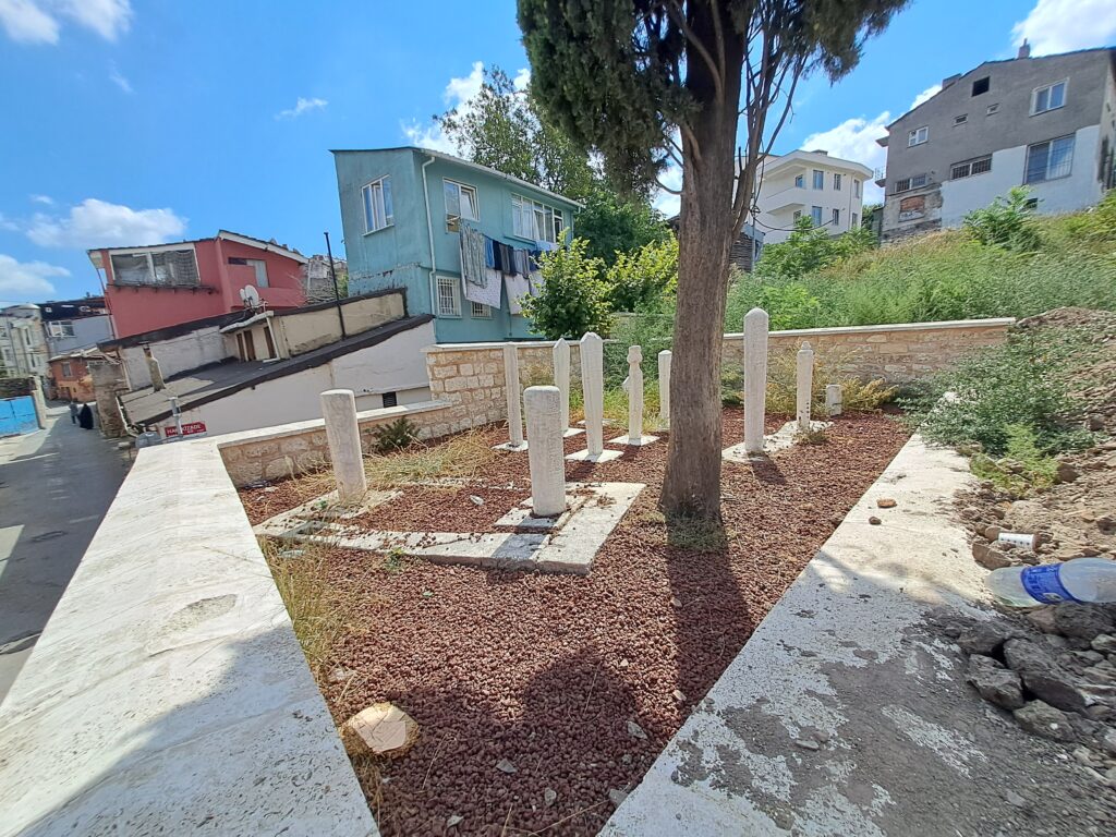 Aracımızı Hoca Çakır Sokağına park edip, yokuş aşağı devam eden Aşık Yunus Sokağına yöneliyoruz. Bu sokağa girmemizin sebebi Fatih Belediyesinin etrafını yeniden ihya etmek için çevrelediği Hakkizade Tekkesi idi. Henüz temel toprak kazısı yapılıyordu. Sokak sağa doğru kıvrılarak devam ediyor; tekke arsası, sağımızda yer alan Hakikizade Sokağına kadar uzanıyor. Yukarıya kafamı kaldırdığımda tekkeye ait küçük bir hazire görüyorum. Yokuş aşağı indiğim için hazire yukarıda kaldığından sadece kabir taşları fark edilebiliyor. Hemen biraz geriye giderek bahçe duvarının bitimindeki merdivenlerden bahçe duvarına çıkıyorum. Bahçe duvarında ilerleyerek hazirenin tam yanına gelip bir kaç kare fotoğraf çekiyorum. Fatih Belediyesi kabirlerin çevre düzenlemesini yapmış, alanını belli etmiş. Yani, tekke inşaatı henüz başlamadan Hakkizade Tekkesi Haziresi çevre düzenlemesi tamamlanmış. Gerçekten çok büyük bir incelik. (2022 yılı google earth görüntülerinde kabir taşları gözüküyor; bakımsızlıktan ne olduğu anlaşılmıyor bile. Daha eski görüntülerde ise kabirler otların arasında neredeyse görünmez halde).