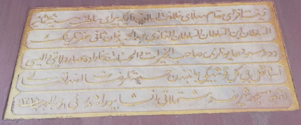 | Özbekler Tekkesi Mescidi Kitabesi (Mescid giriş kapısı üzeri Fî 1 Recebi’l-Mücerreb 1318 M. 25 Ekim 1900 5 satır 1 Zînet-i efzâ-yı makâm-ı muʻallâ-yı Hilâfet-i İslâmiyye ve erîke-pîrâ-yı saltanat-ı seniyye-i Osmâniye 2 es-sultân ibnü’s-sultân es-sultân, el-gâzi Abdülhamid Hân-ı Sâni Hazretlerinin 3 devr-i mesʻûd- hümâyunlarında sâhibü’l-hayrât ve’l-hasenât Buhâra’da Hisar vilâyeti vâlisi 4 Estankıl Bigil Kuşbigi cânibinden hasbeten limerdâtillâhi Teâlâ 5 işbu mescid-i şerîf ve müştemilâtı inşâ buyurulmuşdur. Fî 1 Recebi’l-Mücerreb 1318 1 Yüce halifelik makamının ve yüksek Osmanlı saltanatının tahtının süsü 2 sultanoğlu sultan Gazi İkinci Abdülhamit Han Hazretleri’nin 3 mutluluk veren devrinde hayır ve hasenat sahibi Buhara’da Hisar şehrinin valisi 4 Estankıl Bigil Kuşbigi tarafından Allah’ın rızasını kazanmak için 5 bu mescid ve müştemilatı inşa olunmuştur. Kaynak: Fatih Belediyesi Kitabelerin Kitabı Fatih (E.T:12.6.2022) |
