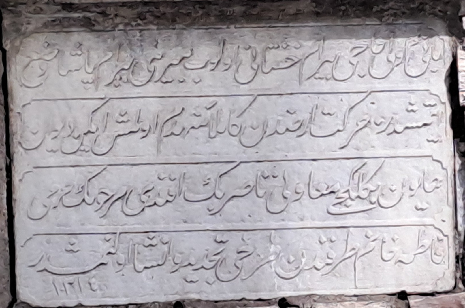 | 1 Bu camiyi ilk yaptıran Hacı Bayram-ı Haftani olup minberini Bayram Paşa yaptırmıştır. 2 Depremden dolayı tamamen yıkılmışken Divân-ı 3 Hümâyun Beğlikci Muâvini merhum Nâsır Beyefendi’nin eşi 4 Fatma Hanım tarafından tertibi yenilenerek yaptırılmıştır. Kaynak: Kitabelerin Kitabı Fatih E.T: 22.9.2025) |