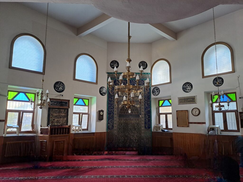 Cuma namazından önce vaazı dinledik. Namazdan çıkarken geriye dönüp tek kare fotoğraf çekebildim cemaati çekmeme adına. Fotoğraf karesine girenleri ise sildim. Caminin hiçbir özelliği kalmamış. Düz tavan. Daha estetik olabilirdi. Cami mihrap yerine doğru daralıyor. Hülasa tarihi hiç bir niteliği kalmamış.