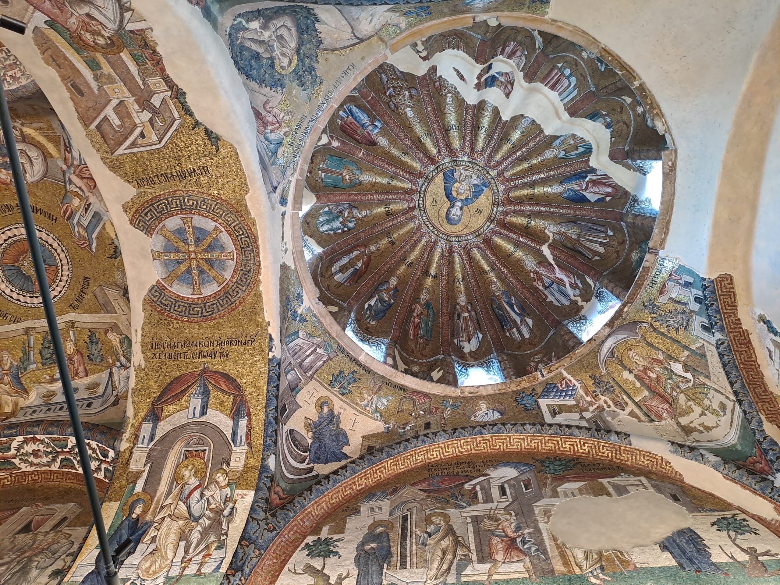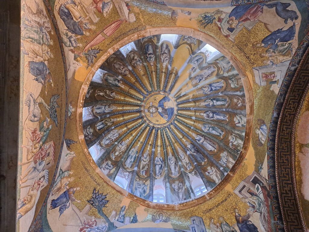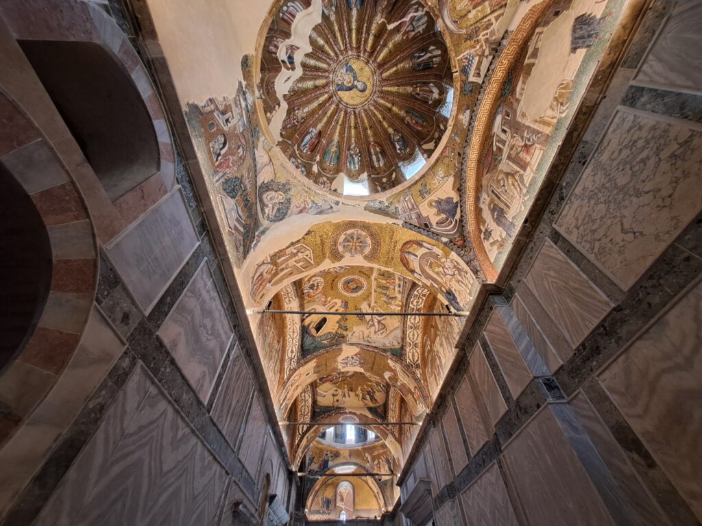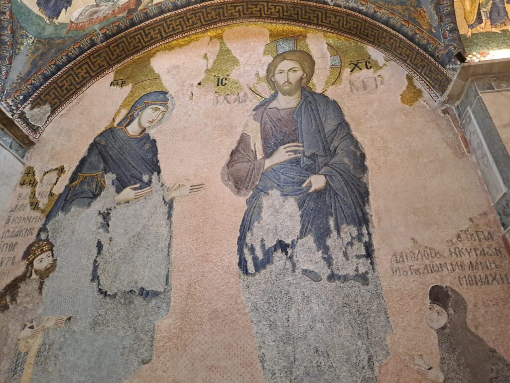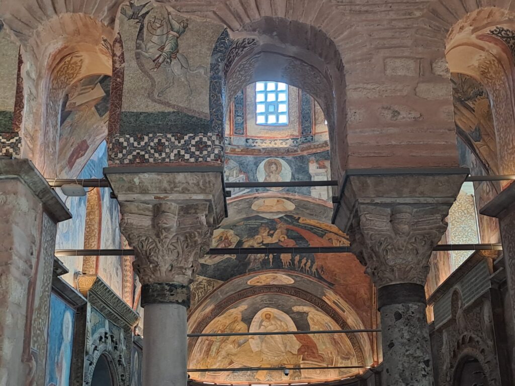 Kariye camii bizim literatürle son cemaat yeri (narteks) duvar ve kubbelerindeki, mozaik ve fresklerle Hz. Meryem ve Hz. İsa hikayesini anlatıyor. Yabancı turistlere rehberleri bir şeyler anlatıyor. Bir Türk hanım da iki arkadaşına kubbe ve duvarlardaki resimleri sıra ile açıklıyordu. Bazı anlatımlarına kulak misafiri oldum. Öğle namazı vakti henüz girmemişti. Camiye geçtik. İki rekat tahiyyatül mescid namazı kıldık.