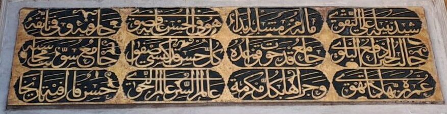 | Cümle Kapısı İnşa Kitabesi Arapçadan Tercüme H. 1074 / M. 1663-64 3 satır – 4 sütun 3 satır (her iki yanında) Ne güzel Camii! Güzellikte gökteki yıldızlara benzeyen bu yüce binanın harcı takvadır. Öyle güzel ki benzeri yapılamaz. Yaptıranın gayesi hayır yolunun bir yolcusu olabilmektir. Yaptıran, eserinin en güzel olması için büyük çaba sarf etdi. Bu caminin içi ve dışı öyle gösterişli oldu ki görenler hayran kaldı. Herkes parmakla gösterir oldu. Muhsin sıfatının sahibi yüce Allah, bu binanın tamamlanmasına vesile olan Valide Sultan’ın (Turhan Hatice Sultan) ömrünü uzatsın, sevaplarını artırmaya muktedir kılsın. Onu her türlü, kaza, bela ve hilelerden muhafaza buyursun. Burası öyle bir yerdir ki buraya giren Hakka yakın, belalara uzak olur. Şair Hasan caminin bitirilişi için şu tarihi söyledi: “Bu Cami yaptıranın takvasının işaretidir.” H. 1074 Kaynak: Fatih Belediyesi Kitabelerin Kitabı Fatih (E.T: 8.11.2025) |