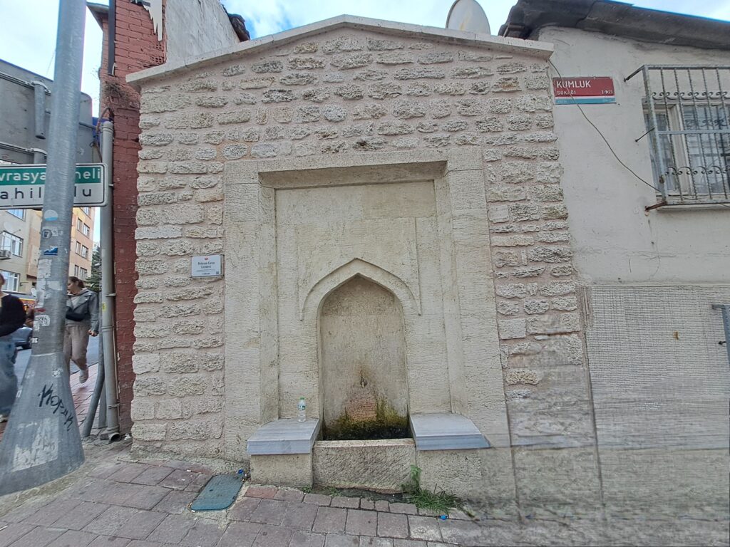 Kadırga Limanı ile Kumluk Sokak köşesinde Behramçavuş Camii Çeşmesini bir sonraki gezimizde fotoğraflayarak eksik kalmasın diye yazıya ekliyoruz. Çeşmenin hiçbir şekilde tarihi bir özelliği olmadığı veya kalmadığı gibi soğuk ve hissiz görünüyor. Çeşmenin kitabesi, musluğu, klasik aynası gibi unsurları bulunmuyor.