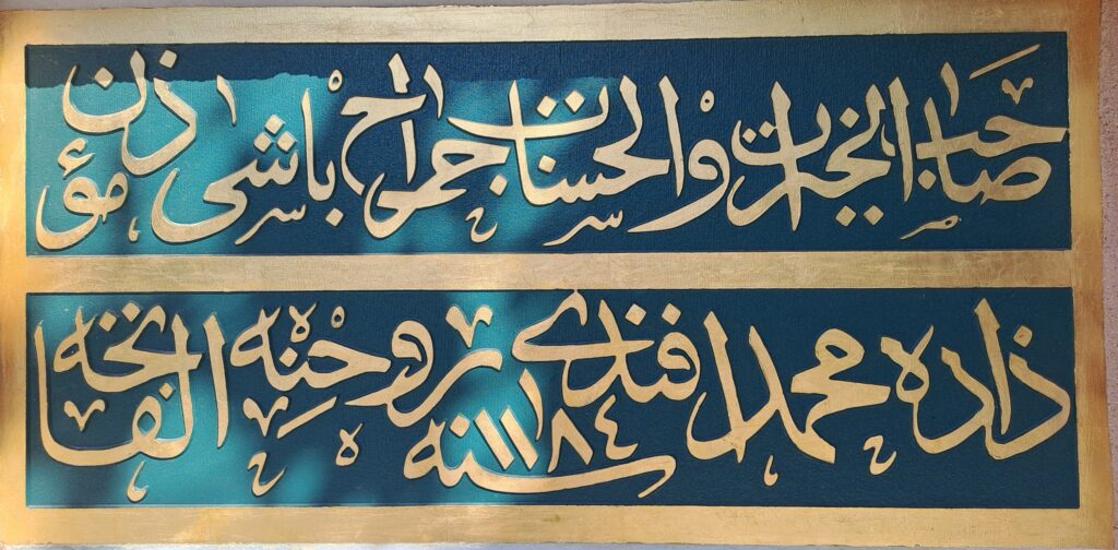 | Cerrahpaşa Müezzinzade Mehmet Efendi Çeşmesi Kitabesi 2 satır 1 Sahibül hayrat vel hasenat Cerrahbaşı Müezzin- 2 zade Mehmed Efendinin ruhuna el fatiha 1184 |