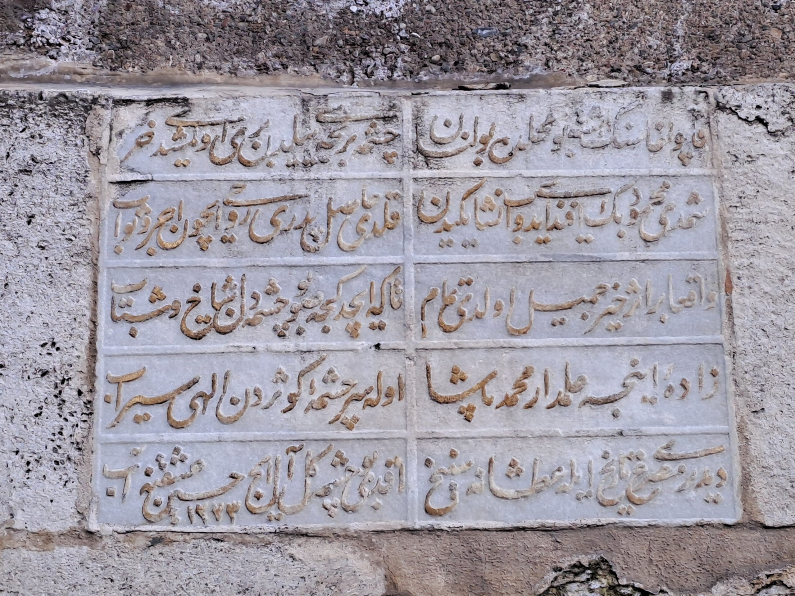 | 1 Kapı Ağasının burada bulunan çeşmesi nice yıldan beri harap olmuştu. 2 Şimdi Mahmut Beyefendi yeniden inşa edip babasının ruhu için ecir ve sevap kazanmıştı. 3 Yaşlı genç herkes bu çeşmeden su içtikçe gerçek bir güzel hayır eseri tamamlandı. 4 Ey Allah’ım, İncezade Alemdar Mehmet Paşa Kevser pınarından içip kansın. 5 Senih, susayanlara bir tarih mısraı ile şöyle söyledi: “Bu çeşme aktı, gel, Hz. Hüseyin aşkına su iç |