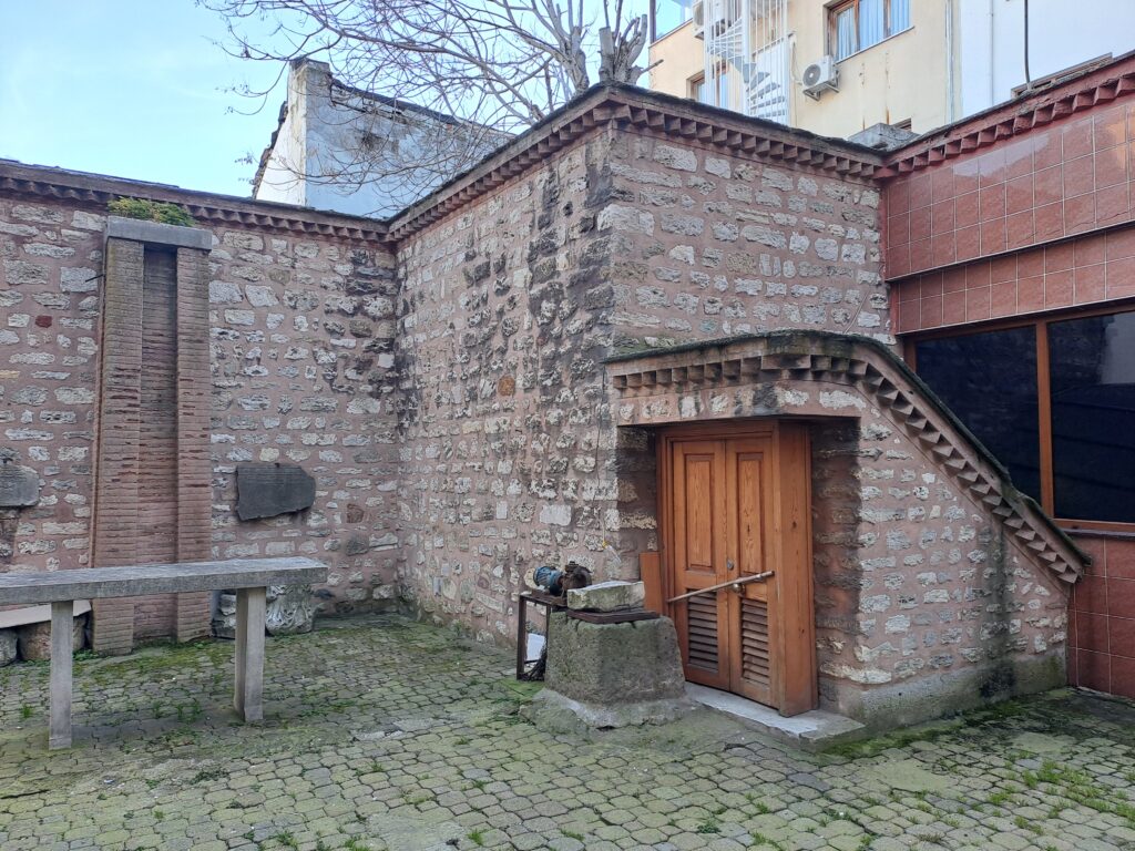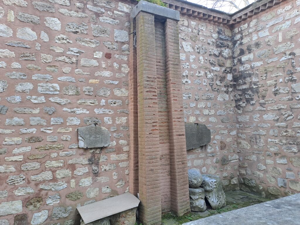İSHAK PAŞA CAMİİ SU TERAZİSİ Avlunun bir köşesindeki su terazisi ilgimizi çekti. Avlu içerisinde duvar diplerinde sütun başlıkları parçaları yer alıyor. Tarihi bir değeri var mıdır bilmiyorum. İSHAK PAŞA CAMİİ SU TERAZİSİ