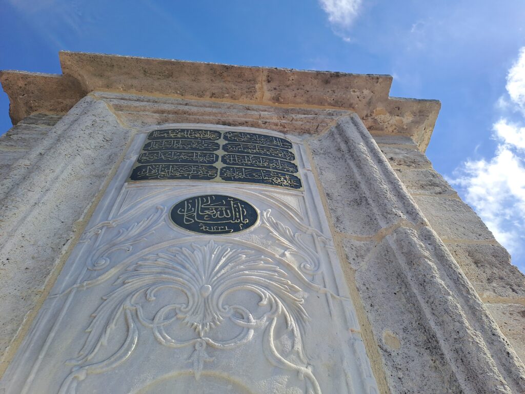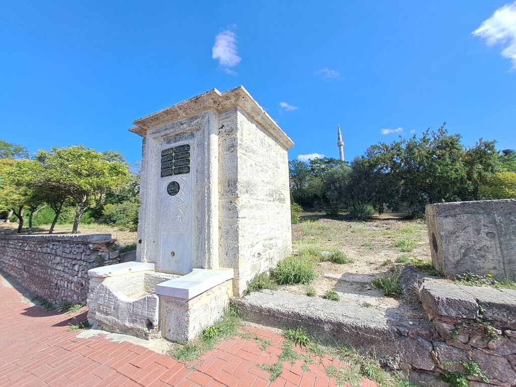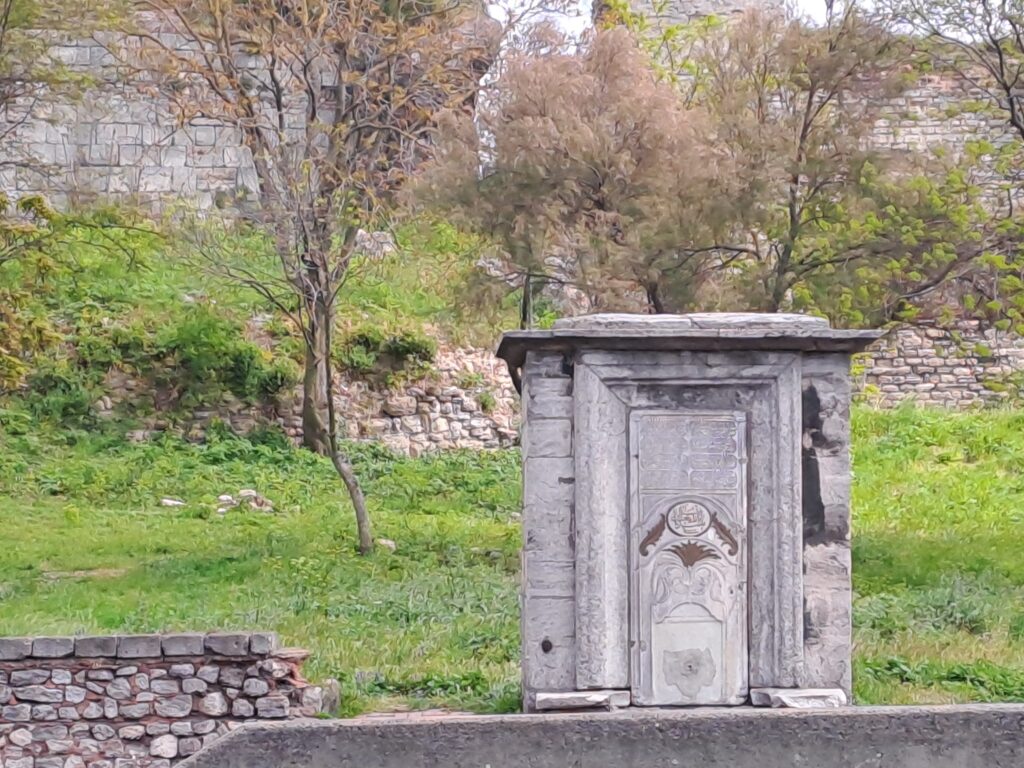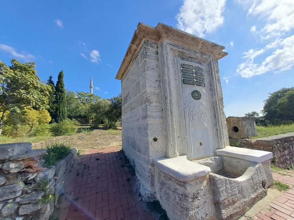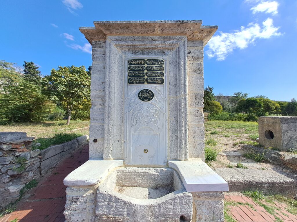 23 Eylül 2025 Salı günü bölgeyi gezerken daha önce uzaktan gördüğüm sur dışındaki Kasapbaşı Hasan Efendi Çeşmesini bu kez yakından görüyoruz. Çeşme, yen, restore edilmiş. 4 satır – 2 sütunluk kitabesi bulunuyor. Kitabenin altında yuvarlak manşet içerinde “Maşallahu teala han sene 1231” yazısı yer alıyor.