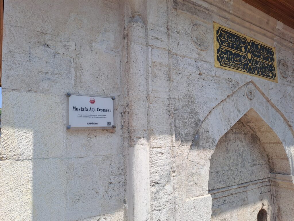 12 Haziran 2025 Perşembe günü bölgeyi gezerken çeşmenin Fatih Belediyesi tarafından restore edildiğini görüyoruz. Çok sevindik. Çeşmeye isim olarak Mustafa Ağa Çeşmesi ismi verilmiş. Çeşmeye kiremit döşeli çatı yapılmış, korumaya alınmış. Çeşmenin kitabesinde 1093 tarihini okuyoruz. Çeşmenin dört bir yanını fotoğrafladıktan sonra Üçbaş Camiine doğru ilerliyoruz.