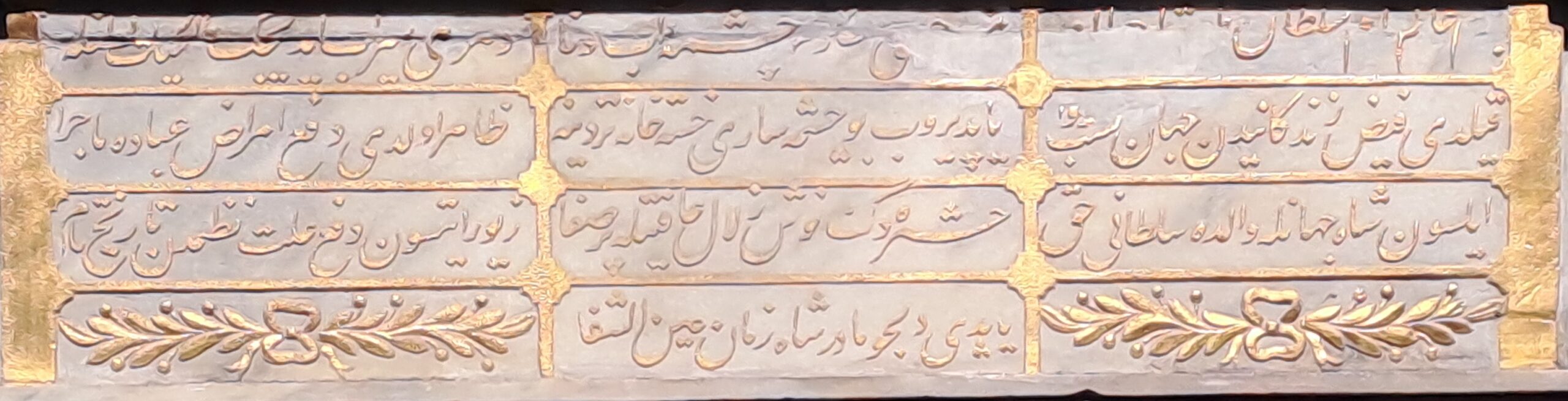 | Bezm-i Alem Valide Sultan Çeşmesi Kitabesi (4 satır-3 sütun-5 beyit / son satırda ortada) 1 Bezm-i âlem nâm Sultân mâder-i Şâh-ı cihân Menbaʽ-ı cûd ü mekârim çeşme-i âb-ı vefâ 2 Dehri sîr-âb edecek mâ’ü’l-hayâtı lütfile Kıldı feyz-i zindegânîden cihân kesb-i devâ 3 Yapdırıp bu çeşme-sârı hastahâne nezdine Zâhir oldu defʽ-i emrâz-ı ibâda mâcerâ 4 Eylesün şâh-ı cihânla Vâlide Sultânı Hak Haşre dek nûş-i zülâl-i âfiyetle pür-safâ 5 Zîver etsün defʽ-i illet nazmdan târîh-i tâm Yapdı dil-cû mâder-i şâh-ı zaman aynü’ş-şifâ Kaynak: https://kulturenvanteri.com/ (E.T:20.12.2021) |