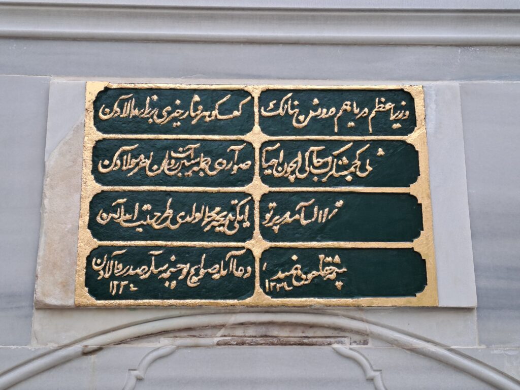 | Vezir-i Azam derviş Paşa Çeşmesi Kitabesi 4 satır – 2 sütun 1 Vezîr-i aʽzam-ı deryâ-himem Derviş Paşa’nın Kef-i gevher-nisâr-ı hayrı ber-ter ebr-i bâlâdan 2 Edip bu çeşmeyi geçmişlerin cânı için ihyâ Suvardı cümlesin âb-ı revân-ı ecr-i Mevlâdan 3 Kalem ki nâdirân-ı şübhe-i ilhâmdır Pertev İki târîhe mecrâ oldu tarh-ı beyt-i aʽlâdan 4 “Suyun buldu bu dil-cû çeşme hakkâ cûy-ı himmetden” “Duʽâ eyle su iç bu çeşme-sâr-ı sadr-ı vâlâdan” 1234 1 Himmet derya gibi çok olan Veziriazam Derviş Paşa’nın iyiliğinin gevher saçan eli gökteki buluttan üstündür. 2 Bu çeşmeyi, geçmişlerin canı için ihya edip hepsini Allah’ın mükâfatının ırmağından suladı. 3 Ey Pertev, kalem, ilhamın nadirlerinden olup güzel bir beyit inşadıyla iki tarihe mecra oldu. 4 “Doğrusu bu güzel çeşme himmet ırmağından suyunu buldu.” “Bu sadrazam çeşmelerinden su içip dua eyle.” Kaynak: Kitabelerin Kitabı Fatih (Fatih Belediye Başkanlığı) (E.T:19.4.2024) |