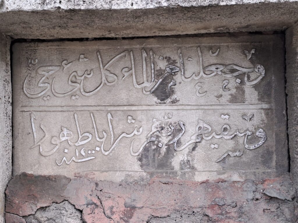 28 Ekim 2025 Salı günü bölgeyi gezerken Yavuzer Sinan Camii duvarında küçük bir çeşme dikkati çekiyor. Çeşme 3 blok taşla çevrelenmiş. Çeşmenin 2 satırlık kitabesi bulunuyor. Kitabesinde “Ve cealna minel mai külli şeyin hay” ve segıhüm rabbihim şeraben tahura” Kitabenin sol alt köşesinde yer alan tarihi tam okuyamadım. 1200 ?