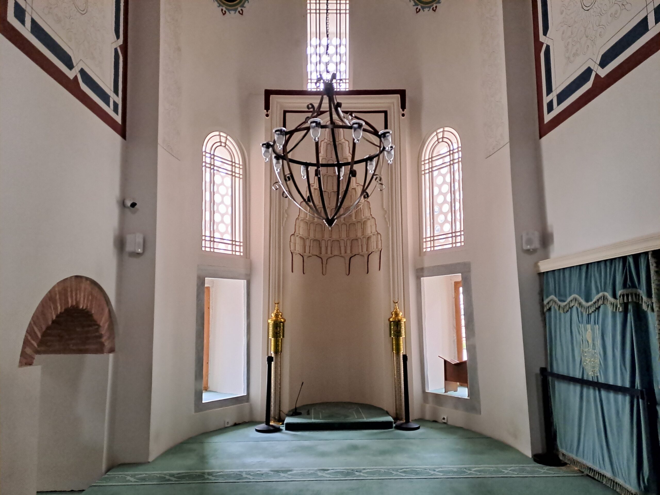28 Ekim 2025 Salı günü bölgeyi gezerken restorasyonu tamamlanmış Cabir Camii’ne ulaşıyoruz. Bazı kaynaklarda Atik (Koca) Mustafa Paşa Camii olarak ta geçen bu yapı, kiliseden dönüştürülmüş güzel bir cami. İkindi namazını Cabir Camiinde kıldım. Namaz sonrası cami avlusunda etrafı fotoğrafladım. Mermer üzerine işlenmiş Güneş Saati gördüğüm en güzel saatlerden. Ancak Hz. Cabir Türbesini göremedim. Meğer türbe, caminin içindeymiş. Cami kapısında güzel koku satan bir kardeşimize durumu anlatınca, cami içerisini işaret etti. Gerçekten de minberin sağında perdenin arkasında tek bir sanduka bulunuyor.