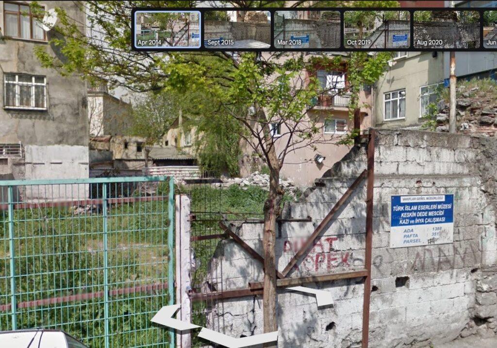 15 Kasım 2024 Cuma günü Bakkalzade Mescidinin Fatih Belediyesi tarafından yeniden ihya edildiğini gördük. Çok sevindik. Kayıp camilerimiz bir bir hayat buluyor. Çok yakında açılışı yapılır. Mescidin avlusunda birkaç kabrin bulunduğu haziresi bulunuyor. Google Earth’tan bölgeyi gezerken vakıflar Genel Müdürlüğünün Tabelasını gördüm. Tabelada “TÜRK İSLAM ESERLERİ MÜZESİ KESKİN DEDE KAZI VE İHYA ÇALIŞMASI” yazıyordu.