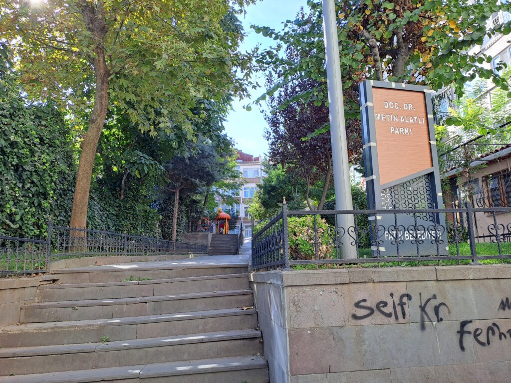 Ekim ayının son günü ve son cuması.1 Cuma namazı için çıktığım yolda Sami Paşa Sokağından Millet Caddesine doğru inerken sağda park tabelası görür gibi oldum. Sağa Mehter Sokağına girdiğimde birkaç adım sonra sağda Doç. Dr. Metin Alatlı Parkı tabelasını gördük. 6-7 basamak merdivenle çıkılan park uzunlamasına iki kademeden oluşuyor. Parkın içerisinde Haseki Sultan Mahallesi Muhtarlığı yer alıyor. Tabelada muhtarlık yazısının altında Keyçi Hatun Mahallesi ve Nevbahar Mahallesi yazıyordu. Parkta bir kaç spor aleti, çocuk oyun gurubu ve bir kaç tane bank bulunuyor.