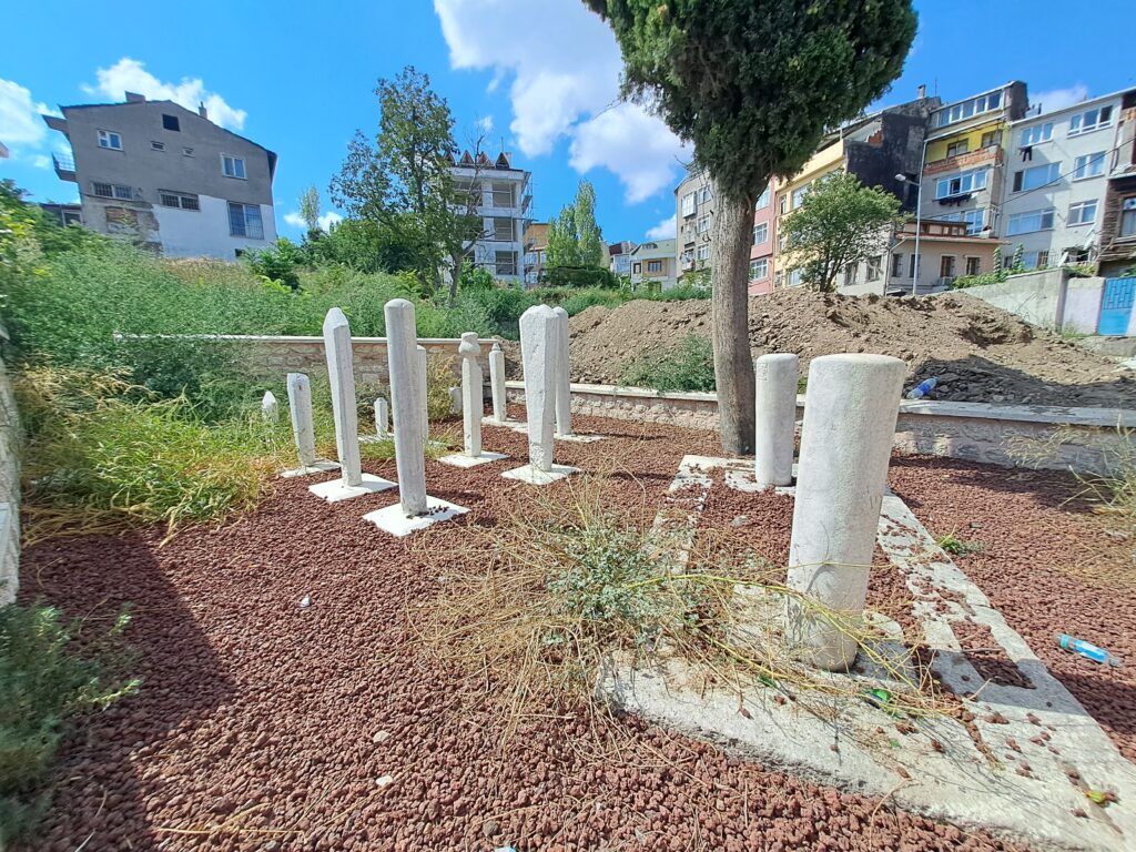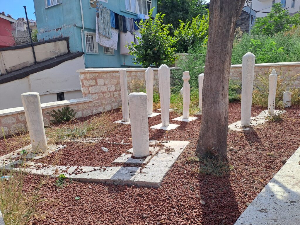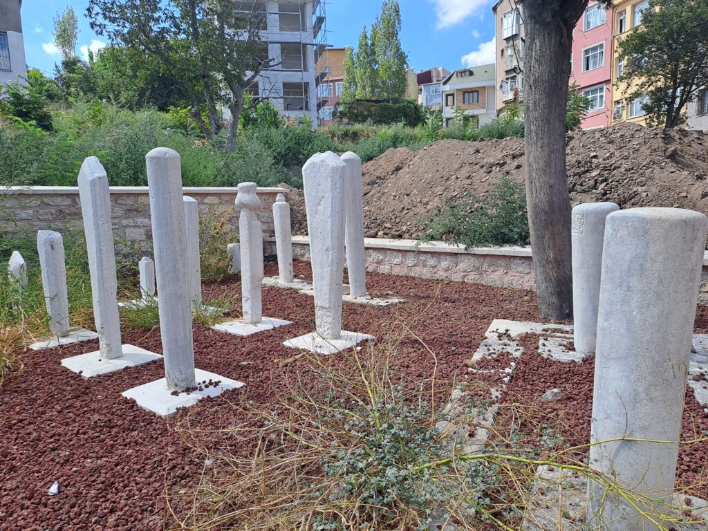 Aracımızı Hoca Çakır Sokağına park edip, yokuş aşağı devam eden Aşık Yunus Sokağına yöneliyoruz. Bu sokağa girmemizin sebebi Fatih Belediyesinin etrafını yeniden ihya etmek için çevrelediği Hakkizade Tekkesi idi. Henüz temel toprak kazısı yapılıyordu. Sokak sağa doğru kıvrılarak devam ediyor; tekke arsası, sağımızda yer alan Hakikizade Sokağına kadar uzanıyor. Yukarıya kafamı kaldırdığımda tekkeye ait küçük bir hazire görüyorum. Yokuş aşağı indiğim için hazire yukarıda kaldığından sadece kabir taşları fark edilebiliyor. Hemen biraz geriye giderek bahçe duvarının bitimindeki merdivenlerden bahçe duvarına çıkıyorum. Bahçe duvarında ilerleyerek hazirenin tam yanına gelip bir kaç kare fotoğraf çekiyorum. Fatih Belediyesi kabirlerin çevre düzenlemesini yapmış, alanını belli etmiş. Yani, tekke inşaatı henüz başlamadan Hakkizade Tekkesi Haziresi çevre düzenlemesi tamamlanmış. Gerçekten çok büyük bir incelik. (2022 yılı google earth görüntülerinde kabir taşları gözüküyor; bakımsızlıktan ne olduğu anlaşılmıyor bile. Daha eski görüntülerde ise kabirler otların arasında neredeyse görünmez halde).
