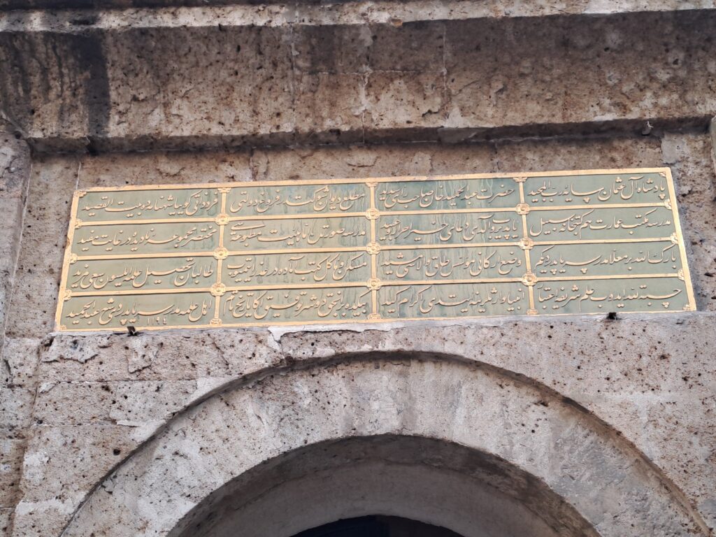 | 1 Osmanlı padişahı, Allah’ın gölgesi, sağlam görüş sahibi Abdülhamit Han Hazretleri’nin devletinin ışığı ululuk divanının matlaıdır. 2 Kendisi ise adeta Şehname’nin en güzel beytidir. 3 Medrese, mektep, imaret, kütüphane ve sebil yaptırarak herkesin hayır duasını aldı. 4 Görünürde medrese ama bütünüyle gayet faydalı nadide bir külliyedir. 5 Allah mübarek etsin, sütunları kurulu, yüksek revakları sağlam yüce bir medrese yaptırdı. 6 Burası hem mesken, hem beslenme yeridir, kitaplar emre amadedir. İsteyenler ilim tahsil etmek için çok çalışsın. 7 O padişah, Allah’ın rızası için şerefli ilme itibar edip peygamber varislerine bol ikramda bulundu. 8 Ey Tevfik, ona tam tarih binde bir düşer: “Abdülhamit Han, ilim ehline medrese yaptırdı.” Kaynak: Fatih Belediyesi Kitabelerin Kitabı Fatih (E.T:21.8.2025) |