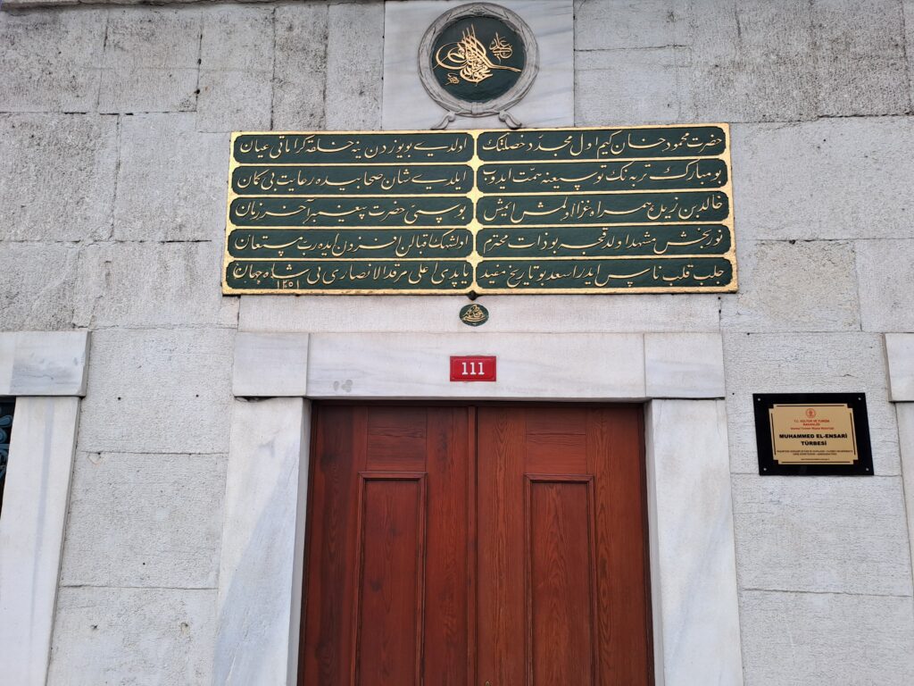 Ayvansaray Caddesindeki yürüyüşümüze verdiğimiz kısa bir aradan sonra devam ediyoruz. Cadde boyunca ara ara Haliç Surları kalıntıları yer alıyor. Biraz ilerledikten sonra solumuzda Hz. Muhammed el Ensari Türbesi yazan yapıya ulaşıyoruz. Türbe kapısının üzerinde 5 satır, 2 sütunluk bir kitabe, kitabenin üzerinde II. Mahmud’a ait bir tuğra yer alıyor. Türbe kapısının hemen sağında yer alan İstanbul Hazireleri tabelasından şu bilgileri okuyoruz içeri girmeden evvel: “İstanbul’u fethetmek için gelen sahabelerden olduğu kabul edilen ve Muhammed el-Ensari’ye atfedilen bu türbe Sultan II.Mahmud devrinde yeniden inşa edilmiştir. Türbenin kapısı üzerinde yer alan Vakanüvis Es’ad Efendi tarafından söylenen ve Hattat İzzet Efendi tarafından yazılmış olan kitabe şu şekildedir…” diyerek 1251 / 1835 de yazılan kitabeye yer vermiş. Türbe biraz yol seviyesinin altında kalmış. bir iki basamakla türbeye giriş yapıyorsunuz. Giriş avlusunun yanındaki oda da sanduka bulunuyor. Medfun zata ve geçmişlerimize dua edip, türbeden ayrılıyoruz. Türbenin hemen bitişiğinde Zeynep Sultan Sıbyan Mektebi ve Zeynep Sultan Çeşmesi yer alıyor.