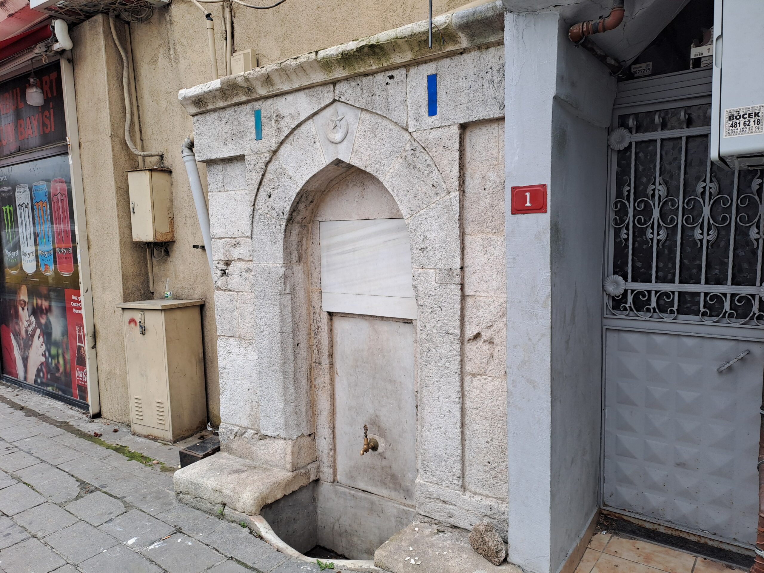 Ayvansaray Kuyusu Sokağından aşağı doğru -Ayvansaray Caddesi- ilerledik. Biraz önce dikkatimizden kaçan tam köşede etrafı ibb tarafından restore edilmek amacıyla çevrilen bir çeşme dikkatimizi çekti. İçerisini göremedik, lakin telefonumu üstten uzatarak yarım yamalak bir görüntü aldık. Araştırdığımız kadarıyla çeşmenin ismi İskender Paşa Çeşmesi. Çeşmenin hicri 975 /1567 yılında yapılmış ve Mimar Sinan eseri olduğuna dair bazı bilgilere rastlıyoruz.