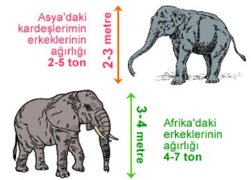 Ağırlık : Afrika fili yaşayan kara hayvanlarının en irisidir; ağırlığı 7,5 tonu, omuz yüksekliği 3-4 metreyi bulur. Hindistan filinin ağırlığı 5 ton omuz yüksekliği 2,5–3 m dolayında, kulakları da Afrika filinkinden çok daha küçüktür.