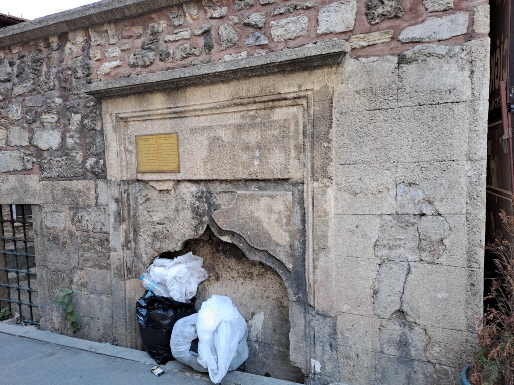 Molla Hüsrev Camisinin dış duvarlarında yol seviyesinin aşağısında kalmış çeşme dikkatimizi çekiyor. Camiyle aynı isimli Molla Hüsrev Camii Çeşmesi / Cemal Yener Tosyalı Çeşmesinin duvarına Cemal Yener Tosyalı Caddesi hakkında Türkçe ve İngilizce olarak kısa bir açıklama içeren tabela asılmış…