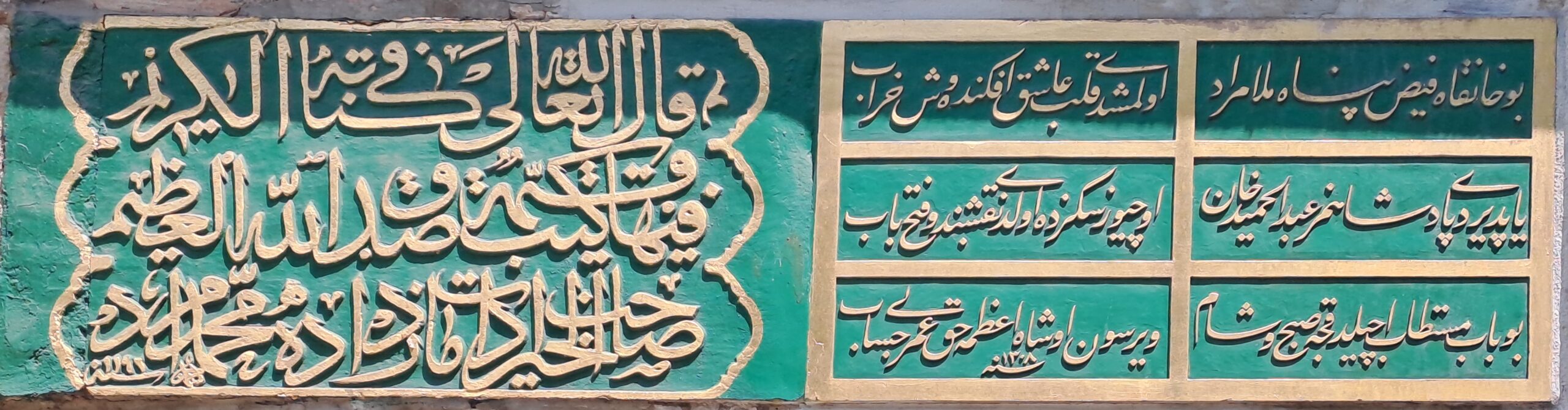 | Murat Molla Kütüphanesi Kitabesi (Sağ) Cümle Kapısı üzeri / Avlu kapısı üzeri H.1308 / M.1890-91 3 satır – 2 sütun 1 Bu hankâh-ı feyz-penâh-ı Molla Murâd Olmuşdu kalb-i aşık-ı efkende-veş harab 2 Yapdırdı padişahımız Abdulhamid Han Üç yüz sekiz de oldu Nakşibend ü feth-i bâb 3 Bu bâb-ı müstetâb açıldıkça subh u şam Versin o şah-ı azama Hakk ömr-i bi-hesab 1308 Kaynak: Fatih Belediyesi Kitabelerin Kitabı Fatih (E.T:13.6.2025) |