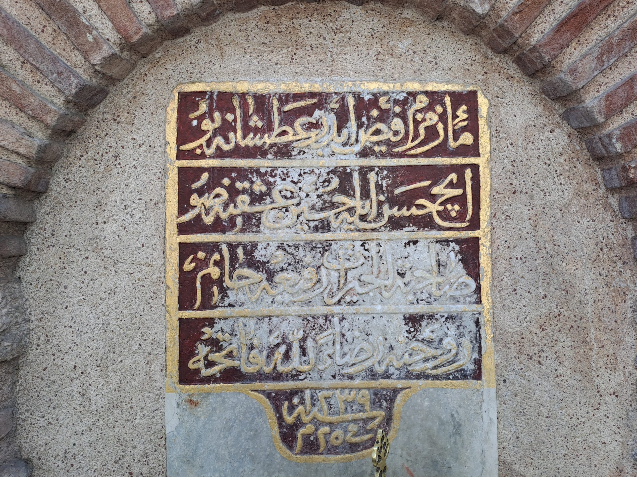 | Refia Hanım Çeşmesi Kitabesi 4 satır – 1 sütun 1 Mâ’-i Zemzem feyz ider atşâna bu 2 İç Hasan ile Hüseyn aşkına su 3 Sâhibetü’l-hayrât Refîa Hanım 4 Rûhuna rızâen-lillâhi Fâtiha Kaynak: kulturenvanteri.com (E.T.:1.1.2022) |