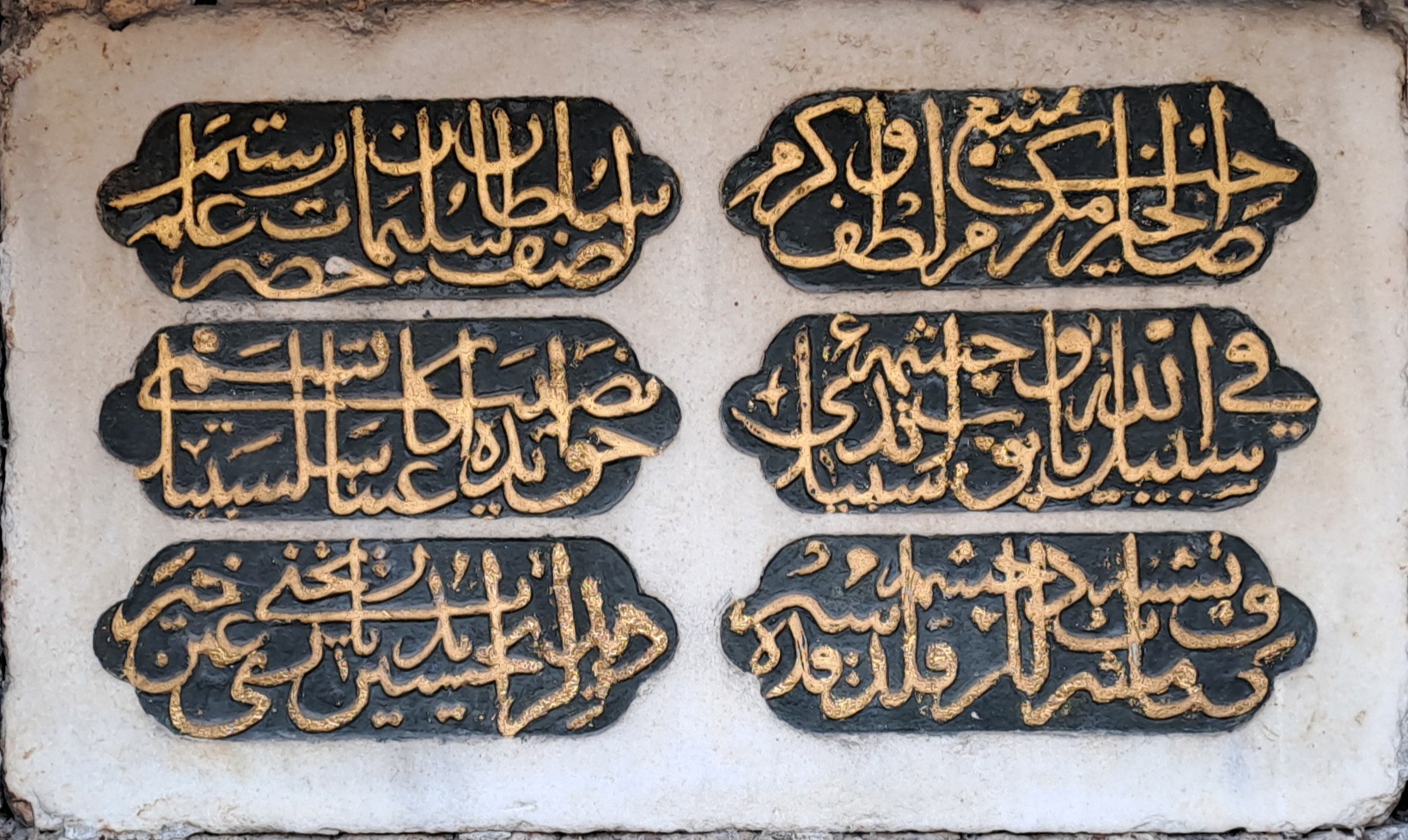 | Rüstem Paşa Çeşmesi Kitabesi 3 satır – 2 sütun 1 Sâhibü’l-hayr-ı mükerrem menbaʽ-ı lutf u kerem Âsaf-ı Sultân Süleymân Hazret-i Rüstem-alem 2 Fî-sebîlillâh yapıp bu çeşmeyi etdi sebîl Hak nasib ede ona “Aynan tüsemmâ Selsebîl 3 Sâf-meşreb teşne-diller çeşmeyi kıldıkda seyr Dediler tahsîn edip târîhini “zî ayn-ı hayr (Kaynak: https://kulturenvanteri.com/ E.T:15.5.2022) |