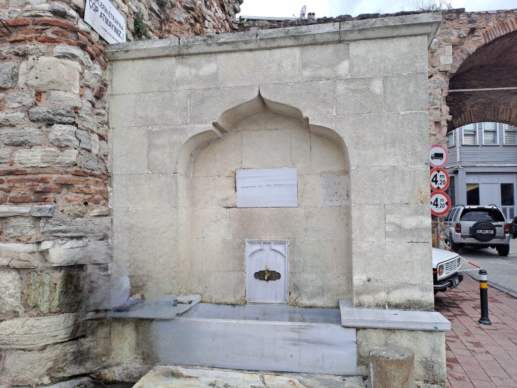Küçük Mustafapaşa Parkının köşesinden sola Odun İskelesi Sokağına girdik. Sokağın bitiminde Sağa Cibali Şerefiye Sokağa girerek, Cibali Kapısından Haliç’e doğru çıkış yapıyoruz. Cibali Kapısının Haliçe bakan yüzünde Sivrikoz Çeşmesini görüyoruz. Çeşme yeni restore edilmiş. Musluğu bulunan çeşmenin kitabe yeri mevcut, ancak henüz konmamış. Çeşmenin yan yüzünde çeşmeye ait İBB tarafından tabela konmuş: “Çeşme H. 972 (M. 1564) tarihinde yapılmış. Çeşme orijinal halini kaybetmiştir. Çeşmenin kim tarafından yaptırıldığı bilinmemektedir. Kitabesi günümüze ulaşmamıştır. Kaynaklarda kemerin içerisinde Farsça bir kitabe bulunduğu tespit edilmiştir.”