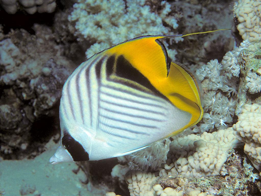 By Diego Delso, CC BY-SA 4.0, https://commons.wikimedia.org/w/index.php?curid=119006489 https://en.wikipedia.org/wiki/Threadfin_butterflyfish#/media/File:Pez_mariposa_auriga_(Chaetodon_auriga),_parque_nacional_Ras_Muhammad,_Egipto,_2022-03-28,_DD_10.jpg (2.10.2024)