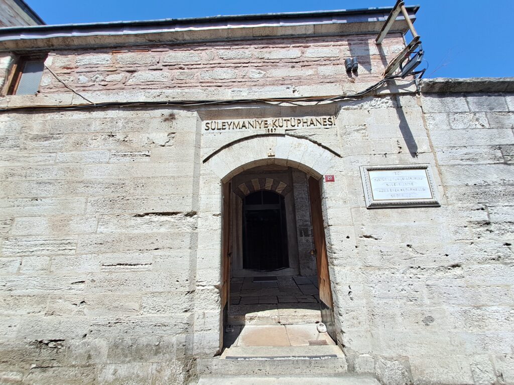 Siyavuş Paşa Medresesi bitimine kadar inip, sonra tekrar yukarı çıkarak dönüş yoluna doğru ilerliyoruz. Yüksekler Sokaktan yokuş yukarı çıkarak sonunda Süleymaniye Kütüphanesine ulaşıyoruz. Külliyenin özel olarak kütüphane yapısı bulunmuyor. Mevcut kütüphane külliyenin bir parçası olarak inşa edilen 1. ve 2.medreselerin mekanında hizmet vermektedir. Kütüphanenin yanında Türkiye Yazma Eserler Kurumu Başkanlığı binası yer alıyor.