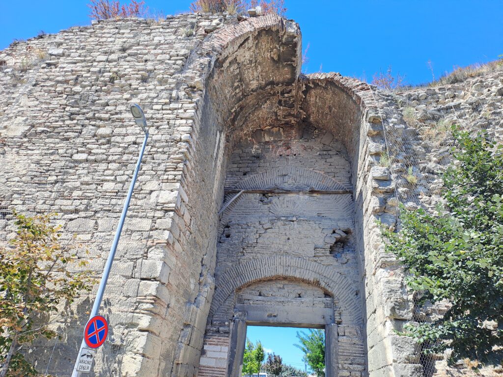 26 Ağustos 2025 Salı günü. Güneşin tam tepede olduğu, öğlen saati. Karagümrük Mahallesi Kaleiçi Caddesinin başındayım. Son haftalarda Suriçi Karasularını daha sistematik olarak incelemeğe başlamıştım. Bilindiği gibi kara surları ilk kapısı, Yedikule Mermer kulenin yanında, köşedeki Askeri Kapıdır. Daha önce Edirnekapı güzergahında Mihrimah Sultan Camii çevresini gezmeme rağmen minibüsçülerin bulunduğu yerde yer alan Edirnekapı’sını fotoğraflamamıştım. Artık sur kapılarından eksik olanları tamamlamak üzere bugün kısa sürede de olsa, Vatan Caddesi son noktadan sağa Kaleiçi Caddesine dönerek gezimize başlıyoruz. Köşede Metro Ulubatlı istasyonu ve 3.sınıf tramvay Mescid-i Selam-Topkapı Tramvay hattının Ulubatlı istasyonu yer alıyor. Alparslan Mesleki ve Teknik Anadolu Lisesinin yeniden inşaatı da bölgede göze çarpan hareketlilikten.