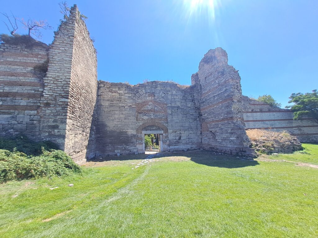 Kaleiçi Caddesinde yürümeğe devam ediyoruz. Nihayet Sulukule Kapısına ulaşıyoruz. Kapı trafiğe açık değil. Kapı, sur dışı yeşil alanlara açılıyor. Sulukule Kapısı Doğu Roma döneminde Pempton Kapısı olarak bilinir. Bu kapıya Pempton denilmesinin sebebi Sultanahmet Meydanındaki million taşından 5 mil mesafe uzakta bulunmasından dolayıdır. Osmanlı döneminde Sulukule Kapısı ismini almasının nedeni ise her kalede bulunması gereken su kulesinin İstanbul surlarında burada bulunmasındandır. Kapıyı hem sur içinden, hem de sur dışından farklı cephelerden bir çok fotoğraf çektim. Dışarı cepheye bakan kapının üzerinde Haç şeklinin altında 2 satırlık latince yazı okunuyor: “PORTARVM VALI do FIRMARIT LIMINE MVROS PVSAEVS MA GNO NON MINOR ANTHEMIO”. Araştırmalarda tercümesi şöyledir: “Küçük değil büyük, yani meşhur Anthémius’un rakibi ve düşmanı olan Pusaeus askerî kapıların surlarını dayanıklı bir eşik yaptırarak sağlamlaştırdı.”