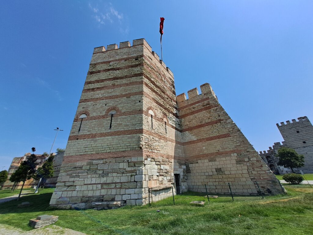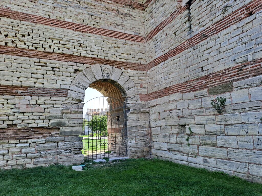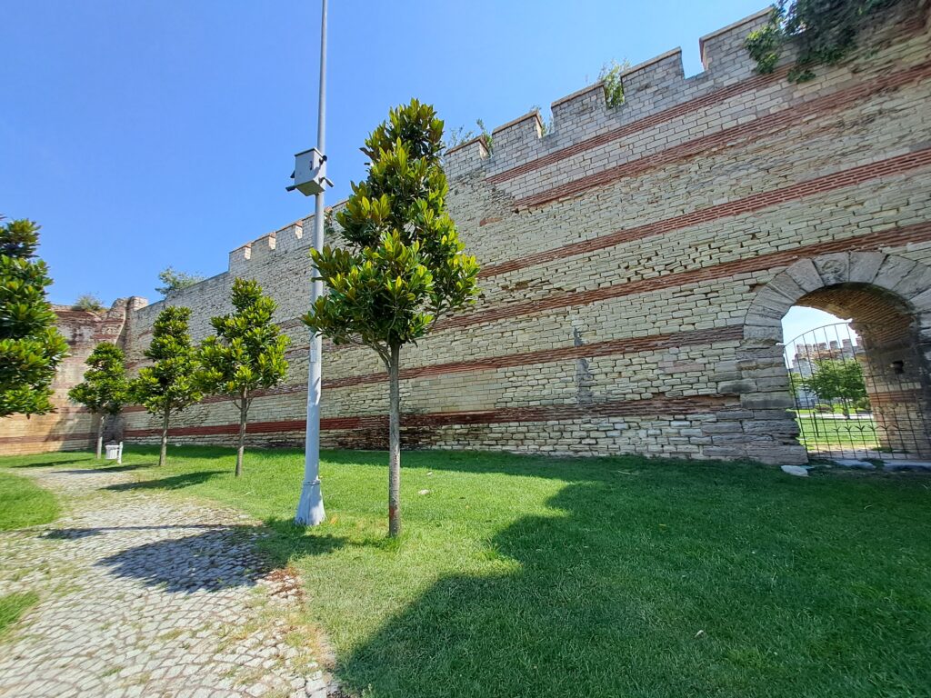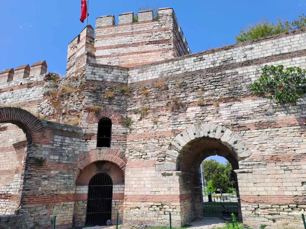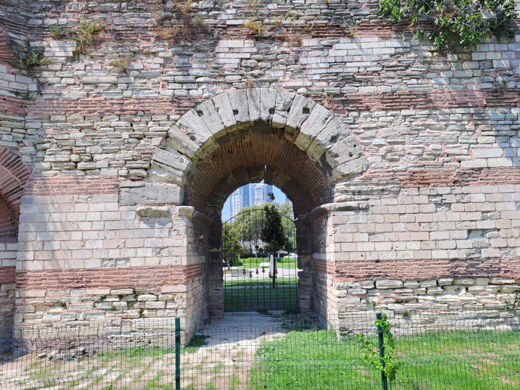 Bugün Kara Sur Kapılarının ilki olan I. Askeri Kapı’yı fotoğraflama imkanı buldum. Karasurları Yedikule Sahil kısmında -Mermer Kulenin yakından- başlıyor. Bilindiği üzere Askeri Kapılar, gösterişsiz ve yalnızca askeri amaçlar için kullanılan yapılardır. İstanbul Sur Kapıları ve Dersaadet’in Sur Kapıları isimli kitapta yer alan 1969 yılına ait bir fotoğrafla aynı açıdan bir kare yakalıyorum. Başlangıç kulesinin Marmara surları bölümü yıkık durumda. Suriçine bakan cepheden başlayarak, surdışına doğru etrafında dönerek hem surları hem de I. Askeri Kapıyı fotoğrafladım. Kapının surdışına bakan cephesinde, kemerin tam ortasında İsa Monogramını görüyoruz. Bu monogramı gördüğümde, aradığımız kapının tam olarak bu olduğunu anladım. Kapı burcun hemen yanında konumlanıyor. (14 Ağustos 2025)
