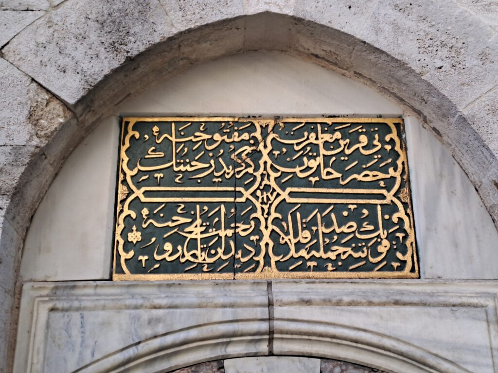 Bugünkü gezimizin sonuna yaklaşıyoruz. Şair Baki Sokaktan tekrar Esrar Dede Sokağına ulaşıyoruz. Bu kez tam karşımızda türbe ve kısa ahşap minareli camii gözüküyor. Türbe ve çevresi İBB Miras tarafından Seyyid Velayet Türbesi ile birlikte restore edilmiş. Türbe kapalı idi. Türbe önündeki tabelada Asude Hatun Türbesi ve Selahaddin Uşşaki Türbesi yazıları altında şu bilgilere ulaşıyoruz: “Asude Hatun Türbesi, Tahirağa Camisinin kuzeyinde konumlanan Asude Hatun Türbesi, II. Bayezid’in sütannesi Asude Hatun’a aittir. Klasik mimari üslupta, kesme taştan, çokgen planlı olarak inşa edilen Asude Hatun Türbesinin üzeri yüksek kasnaklı bir kubbeyle örtülüdür. Türbe kapısının hemen üstünde, sülüs hatlı bir kitabe mevcuttur.” Kitabesinden H.917 tarihinde inşa edildiğini anlıyoruz. Aynı tabelada Selahaddin Uşşaki Türbesi başlığı altında: “Şeyh Abdullah Selahaddin Uşşaki (ö. H 1196 /m1783), tekkenin postnişinlerinden olup, Halvetiyye’nin Uşşaki kolundan Salahi şubesinin kurucusudur. Abdullah Salahi ve Abdi Efendi isimleriyle de bilinen Selahaddin Uşşaki, tahsilini sürdürmek için İstanbul’a gelmiş, burada çeşitli resmi görevlerde bulunmuş, uzun süre divan efendisi olarak Sadrazam Hekimoğlu Ali Paşa’nın (ö. 1758) maiyetinde yer almıştır. 1761’de ise Fatih’teki Tahir Ağa Tekkesinin meşihatını üstlenmiş, vefatına kadar bu tekkede irşat faaliyetlerini sürdürmüştür.” 23 Ocak 2025 tarihinde Tahir Ağa Camii açıktı. Türbeyi birde avludan fotoğrafladık. Türbe kapısının üzerinde 2 satır – 2 sütun kitabe bulunmaktadır.