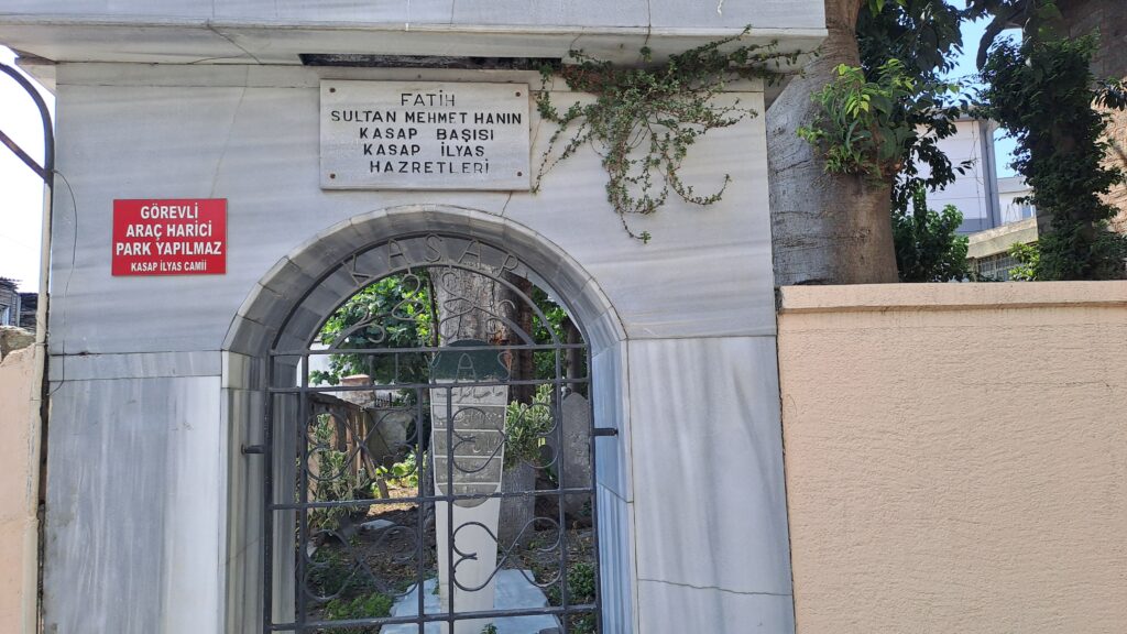 Caddede yürüyüşümüze devam ediyoruz. Biraz sonra cadde ismi değişiyor. Küçük Langa Caddesi ismi, Org Abdurrahman Nafiz Gürman Caddesi ismini alarak devam ediyor. Sağımızda Cerrahpaşa Tıp Fakültesinin bölümleri bulunuyor. Sağ tarafımızda etrafı çevrelenmiş Kasap İlyas Camini görmekteyiz. Güzel, bakımlı, küçük bir cami. Cami duvarının önünde İBB tarafından hazırlanmış İngilizce ve Arapça olarak bilgilendirme prizma tabelada yazılanları okuyoruz. Cami haziresi geniş bir çok kabir bulunmaktadır. Caminin banisi Kasap İlyas burada medfundur. Haziredeki kabrin hizasına mermerden bir tak yapılmış. Üzerinde, “Fatih Sultan Mehmed Hanın Kasap başısı Kasap İlyas Hazretleri” yazısını okuyoruz. Mezar taşı diğerlerinden farklı. Fatih Müftülüğünün 2000 senesinde hazırladığı kitabede şunlar yazmaktadır: “Ni’me’l Cayşten Kasap İlyas tarafından XV. yüzyılın sonunda yaptırılmış. 1495 tarihli vakfiyesinde caminin yanında bir mektep ve altı odanın bulunduğu anlaşılmakta olup bunlar günümüze ulaşmamıştır. 1894 depreminde tamamen yıkılan yapı eski taşları kullanılarak aynı temel üzerine yeniden yapılmıştır. Taş malzeme ile inşa edilmiş kare planlı harim kısmının ahşap son cemaat yeri vardır. Ahşap çatısı içten kubbelidir. 1977 ve 1993’te tamir gören caminin banisi hazirede medfundur.” Caminin avlusundan hastaneye bir kaç basamakla çıkılıyor. Cami açıktı. İçeriden de bir kaç kare fotoğraf aldıktan sonra tekrar caddeye çıkıp yola devam ediyoruz.
