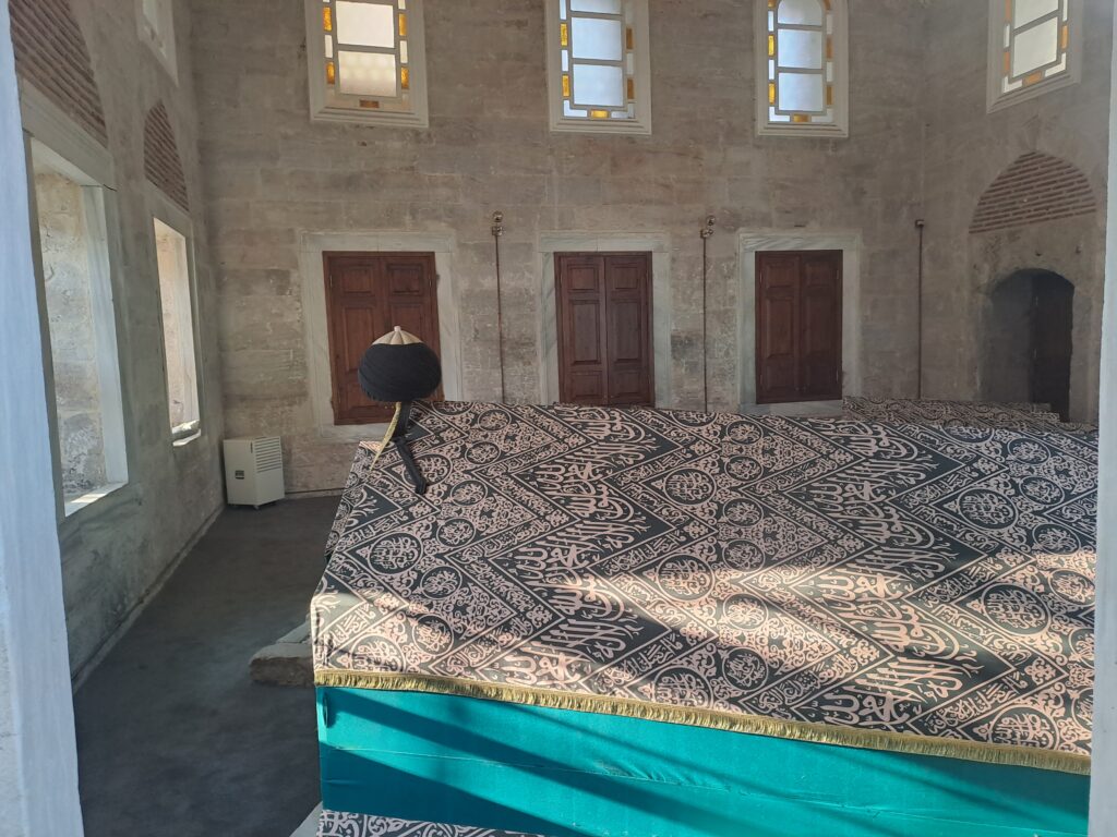 Caminin karşısında bulunan ve aşağı doğru uzanan hazirede kapalı türbe yapısı dikkati çekiyor. Yakınına geldiğimizde İBB Miras tarafından hazırlanan tabelayı görüyoruz. Tabela üzerinde Seyyid Velayet Türbesi yazını okuyoruz. yazının altında türbe hakkında bilgi yer almış: “Ahşap konut mimarisiyle öne çıkan bölgedir. Türbe, Zeyniyye Tarikatı şeyhlerinden, Aşıkpaşazâde olarak da anılan, 15.yüzyıl tarihçilerinden, sufi Şeyh Ahmet Efendinin tesis ettiği, Aşık Paşa Külliyesi’nin bünyesinde yer almaktadır… Aşıkpaşazâde’nin ölümünden sonra yaklaşık 889 / 1484 yılında tekkenin şeyhliğini Seyyid Velayet üstlenmiştir (d.885-929/v.1451-1522). Türbe, kesme taştan inşa edilmiş, kare planlı ve kubbe örtülü bir yapıya sahiptir. Türbede, Seyyid Velayet’in sandukası ile 12 kabir daha bulunmaktadır. Bu kabirlerden sadece ikisinin ismi bilinmektedir (Şeyhin eşi Rabia hatun ve Sonraki şeyhlerden Said Efendi). Türbenin hemen bitişiğinde yer alan hazirede, ulemadan ve devlet makamından önemli şahsiyetlerin mezarı bulunmaktadır. Zaman içerisinde bakımsızlık yangın vb durumlardan dolayı atıl durumda olan türbe 2021-2022 yılları arasında İBB Miras tarafından restore edilmiştir.” İBB Mirasa tarihi dokuyu canlandırdığı için teşekkür ediyoruz. Türbe avlu kapısı kapalı idi. İç kısımları gezemedik. Tabelanın bulundu kısımda Mevlevi heykeli yer alıyor. Ne adına yer alıyor merak ediyorum. Çünkü yeni restore edilmiş böyle güzel bir mekana yakışmamış. 23 Ocak 2025 tarihinde bölgeyi gezerken türbenin camından içerisini fotoğrafladık. Birkaç tane sanduka görebildik.
